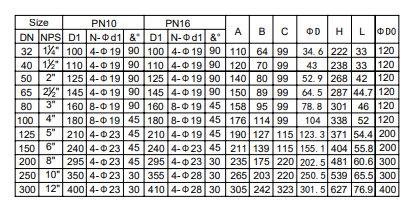 -連接標(biāo)準(zhǔn):PN10/16, ANSI150, DIN16, JIS10K, 16K