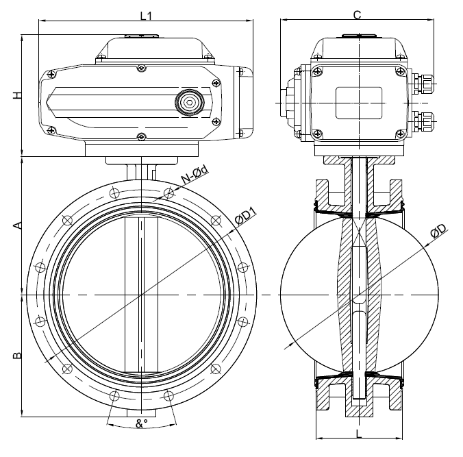 立即咨詢電動(dòng)法蘭蝶閥外形圖: